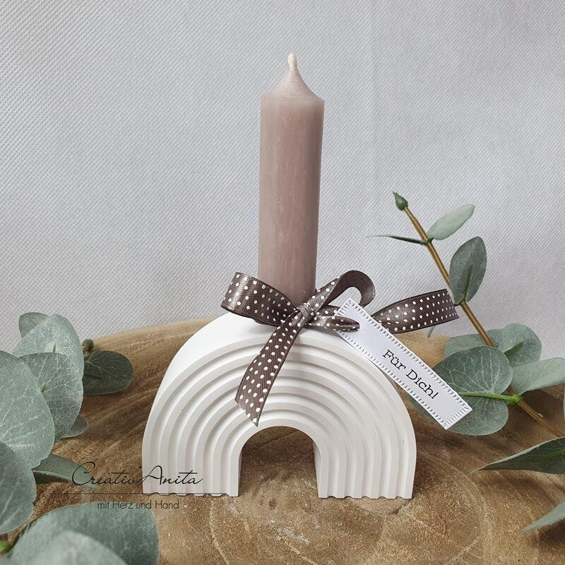 Der schlichte Kerzenhalter in Regenbogenform ist ein wunderschönes Geschenk oder Mitbringsel.