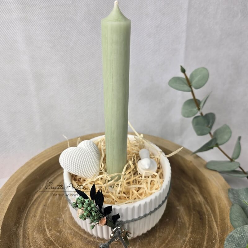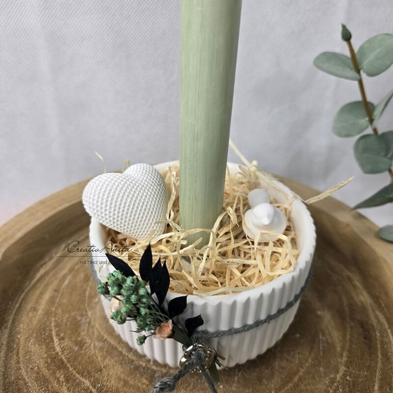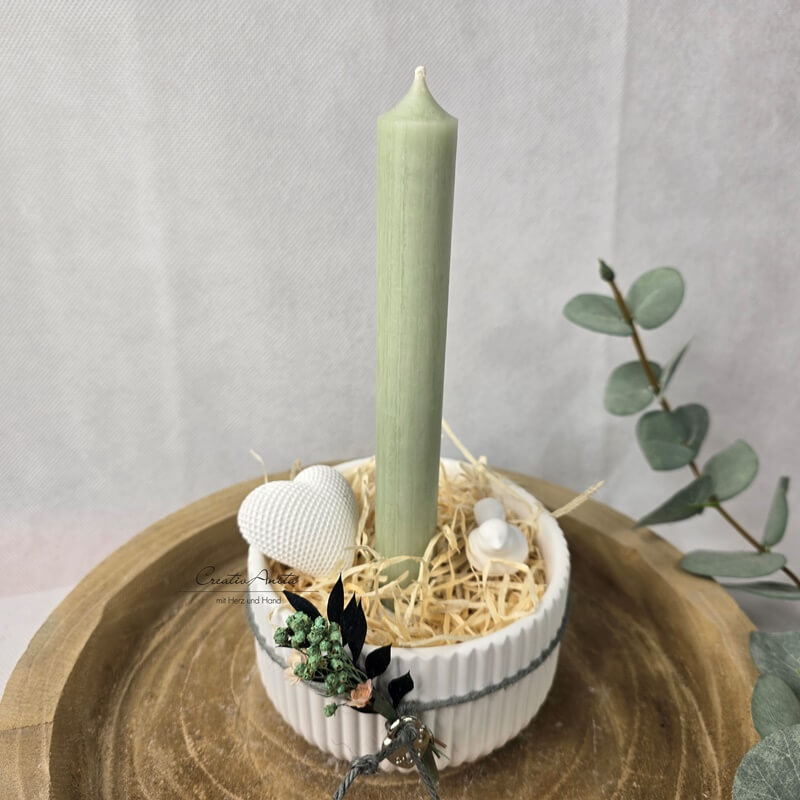 Rillenschale - Dekoschale mit Kerze, Herz und Vögelchen