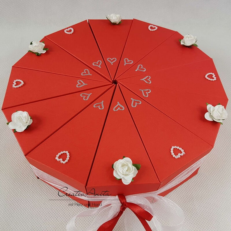 2x12 einzelne Tortenstücke, jedes einzeln nach Belieben befüllbar (z.B. mit Geld, Gutschein, Hochzeitsmandeln, Sprüchen, Süssigkeiten usw.)