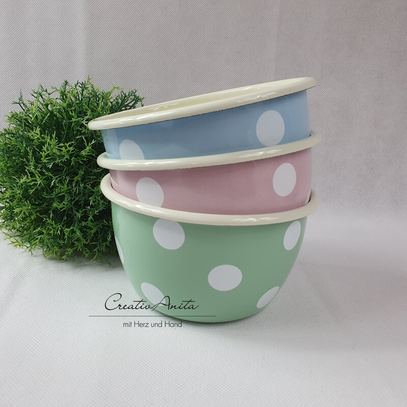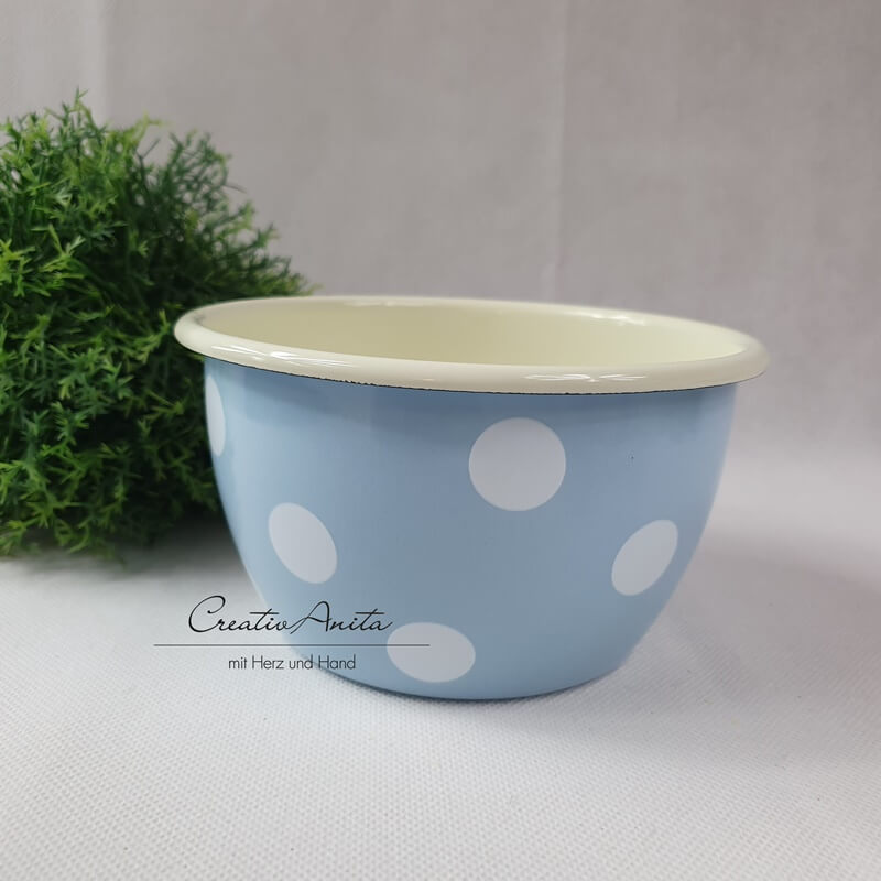 Schüssel - Salatschüssel aus Emaile in Hellblau mit Punkten