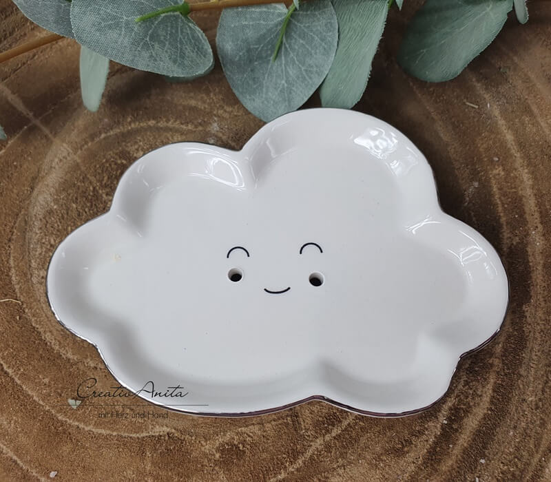Seifenschale Wolke mit silbernem Rand, selbststehend, in Geschenkbox
