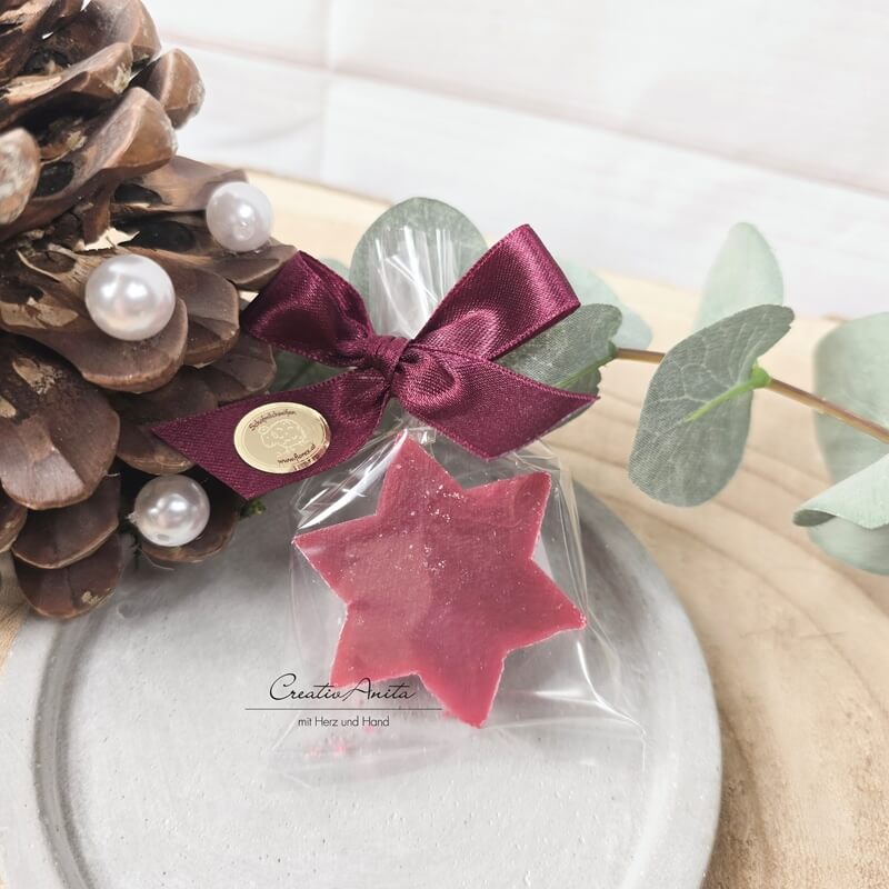 Seifenstern Winterzauber dekoriert und verpackt -BORDEAUX-