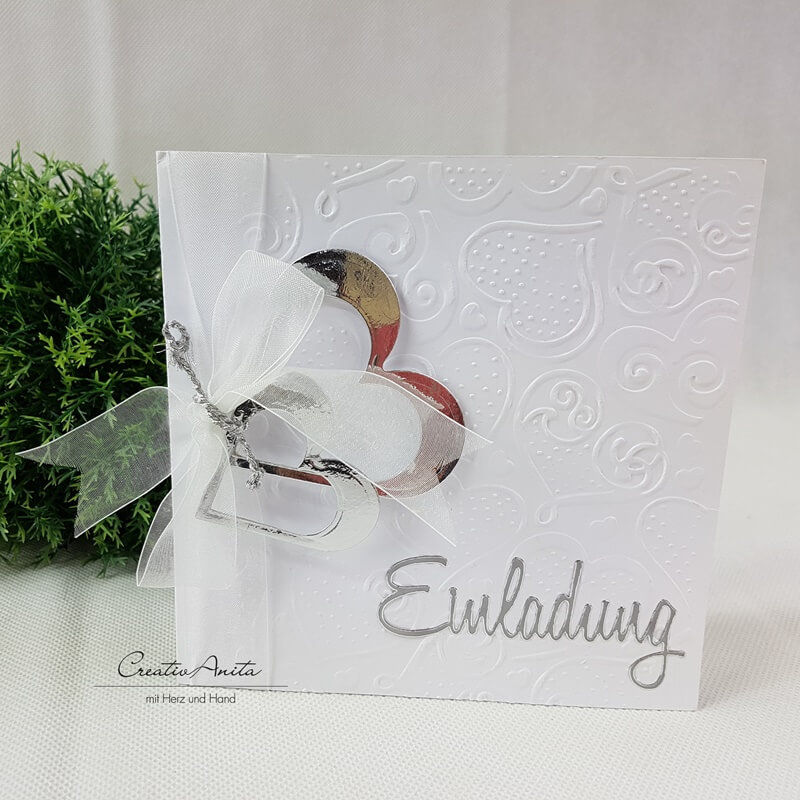 Wunderschöne, schlichte - mit Herzen geprägte Hochzeitsserie. Mit eleganten - wirkungsvoll in Szene gesetzten Silberherzen, Goldherzen oder Herzen in Wunschfarbe.
