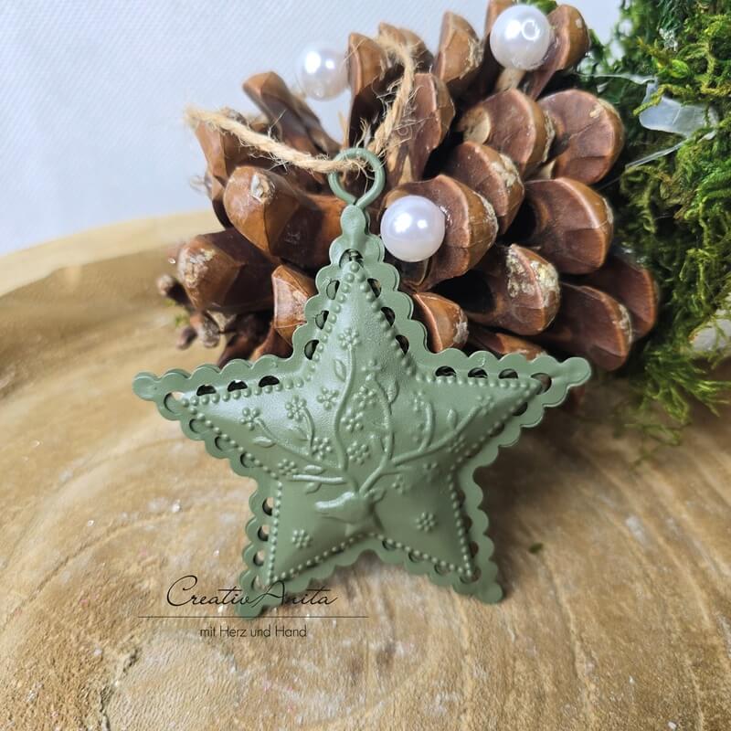 Stern mit Motiv Hirsch zum Aufhängen - GRÜN