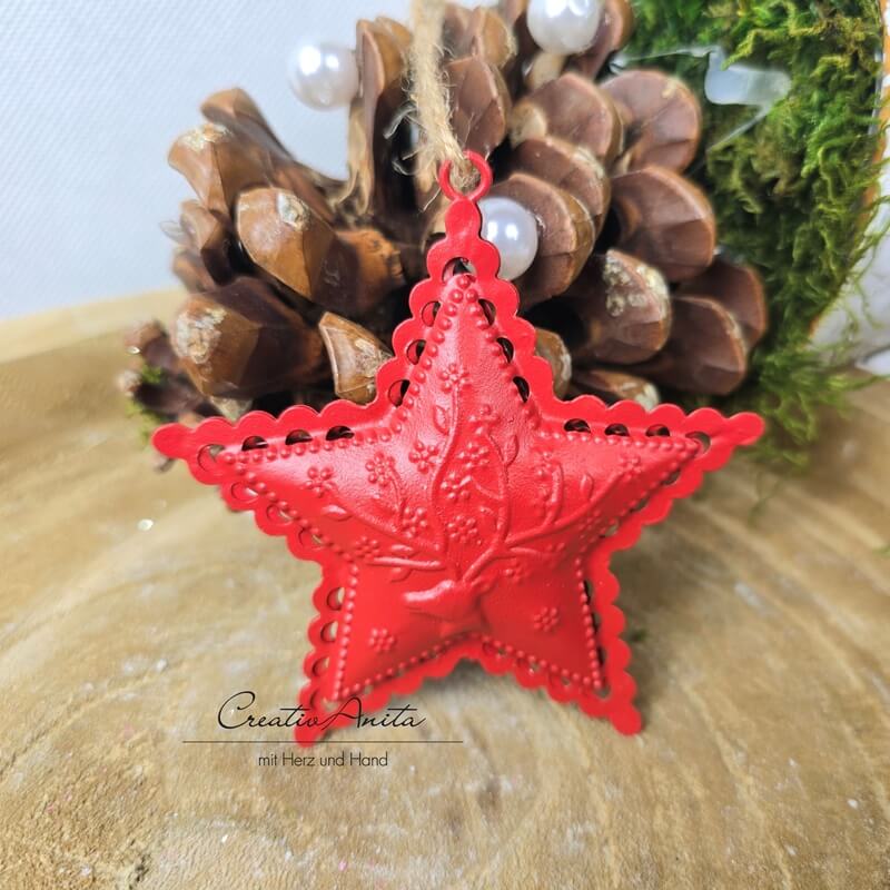 Stern mit Motiv Hirsch zum Aufhängen - ROT