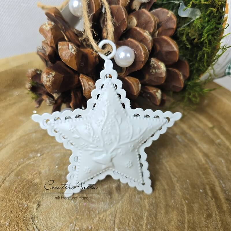 Stern mit Motiv Hirsch zum Aufhängen - WEIß