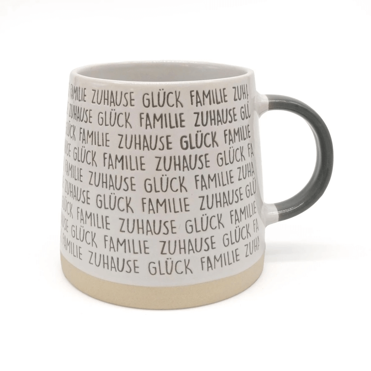 Tasse mit Henkel -Glück - Familie - Zuhause- grau