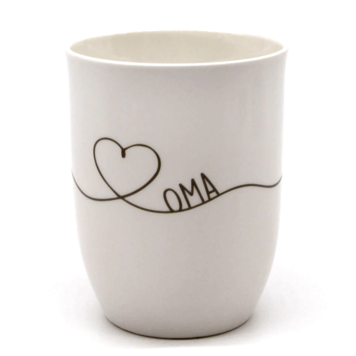 Tasse mit Henkel -Herz geschwungen Oma- anthrazit
