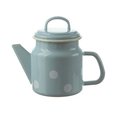 Teekanne aus Email in Hellblau mit weißen Punkten