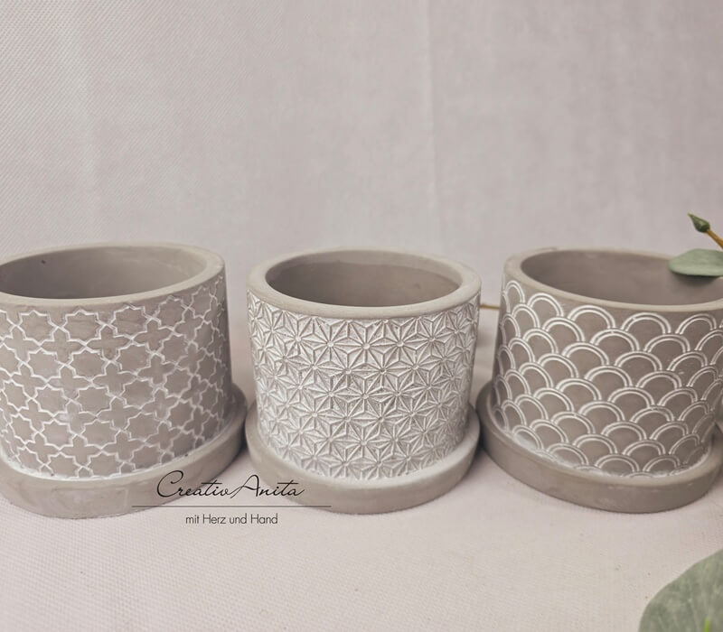 Tontopf in Betonoptik mit tollem Muster -Bogen-