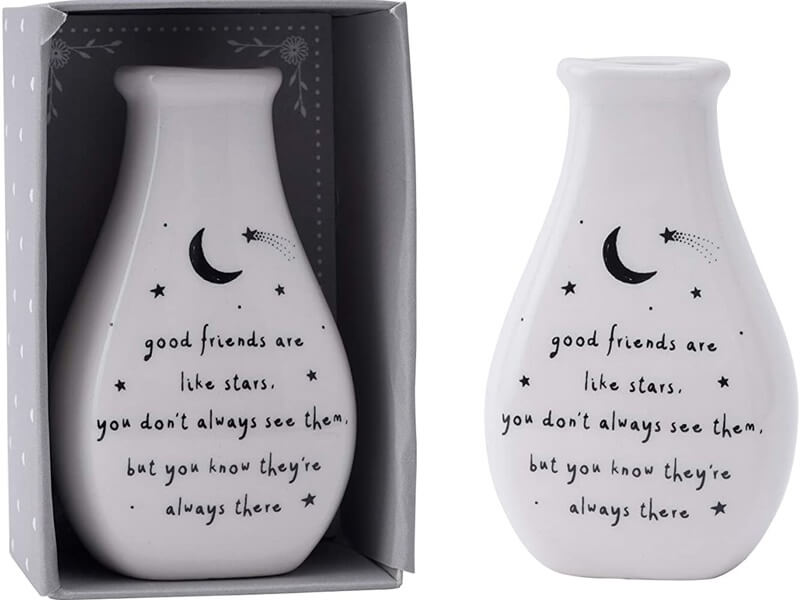 Vase mit Aufschrift "Good Friends Are Like Stars..."