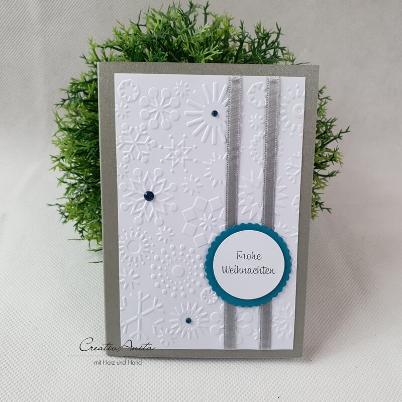 Weihnachtskarte - Grußkarte zu Weihnachten - Schneeflocke - Silber-Weiß-Petrol