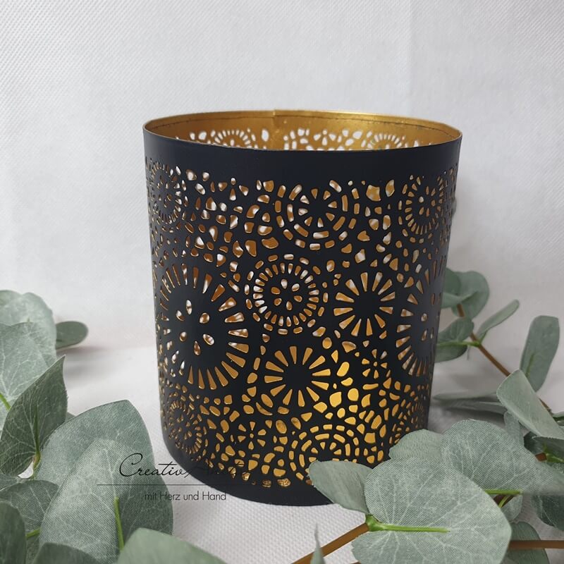 Windlicht aus Metall Schwarz, gold III